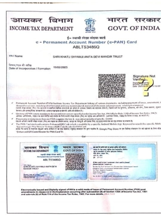 Shri Khatu Shyam Ji Anita Devi Mandir Trust is officially registered on the Government of India’s NGO Darpan portal. This reflects our transparency, authenticity, and commitment to social welfare.