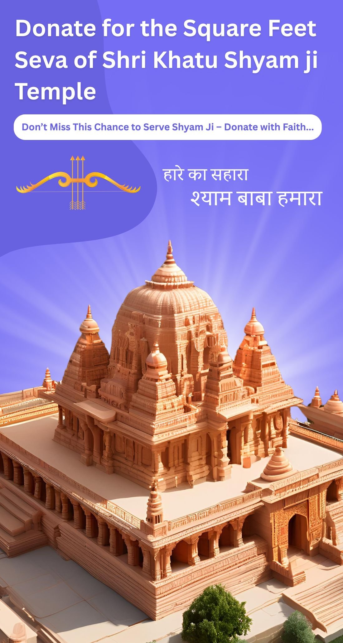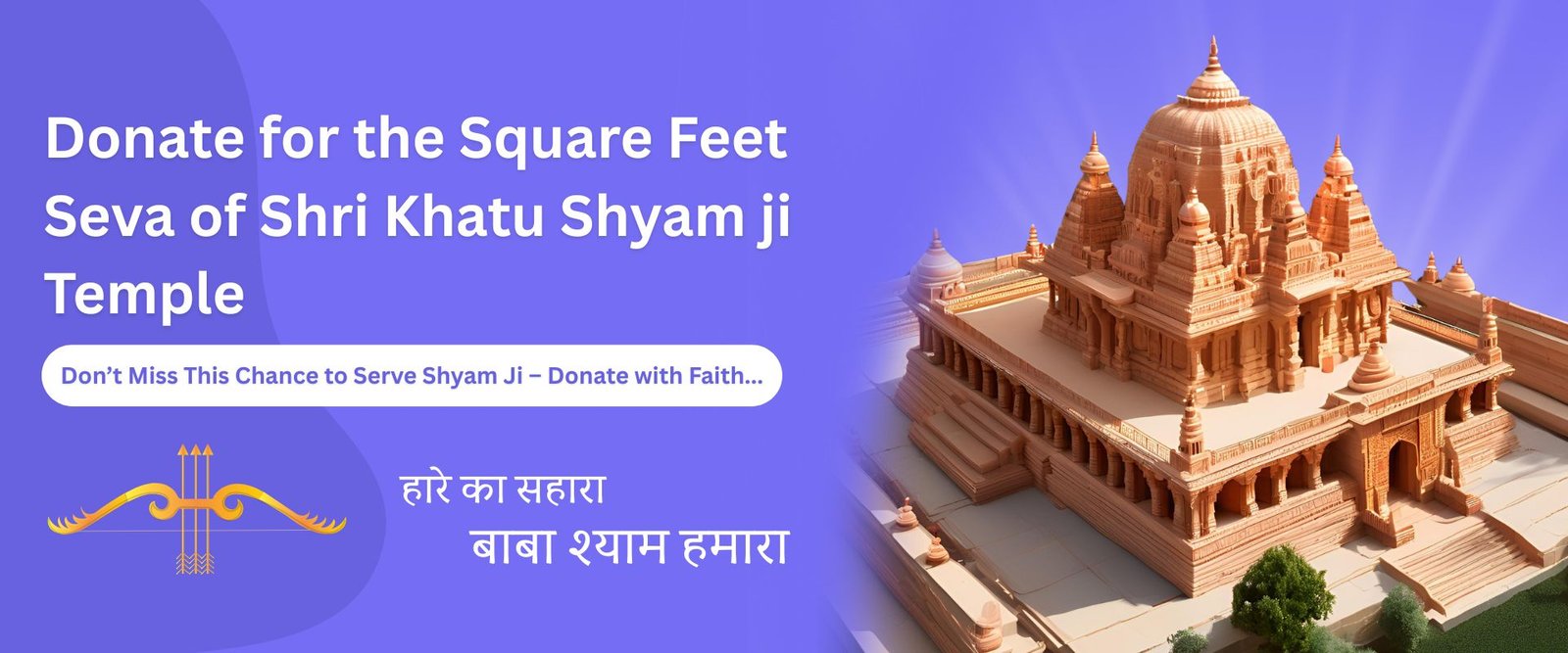 Your contribution directly supports the building of the Khatu shyam Mandir, Gaushala, residential premises for devotees, and temples dedicated to Lord Hanuman and Lord Ganesha.